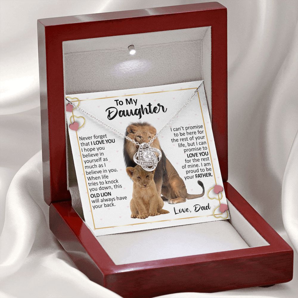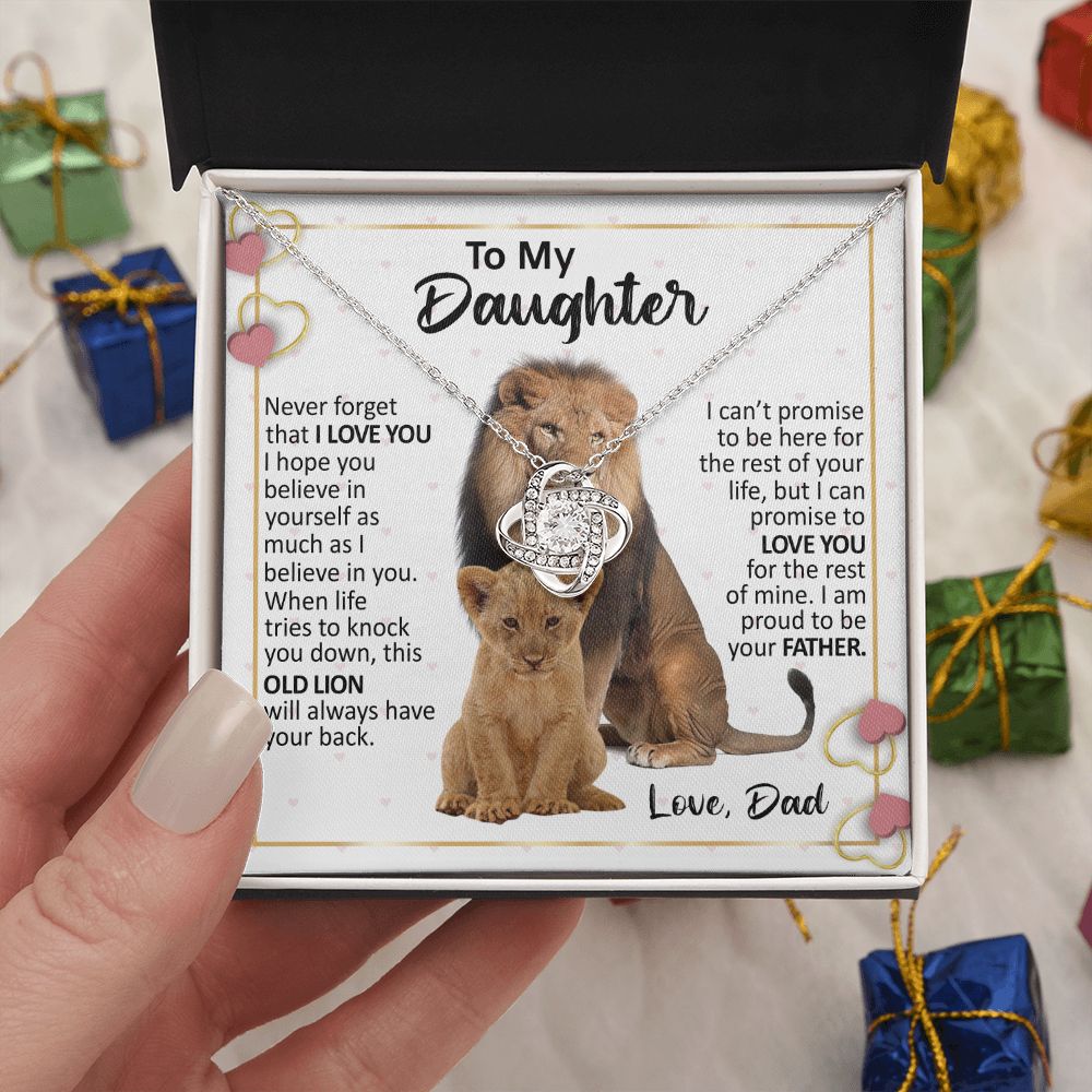 Daughter Gifts From Dad,To My Daughter Lion Dad And Daughter Necklace, Love Knot Necklace Birthday Gift for Daughter From Dad, Christmas Gift For Daughter Necklace, Father Daughter Necklace