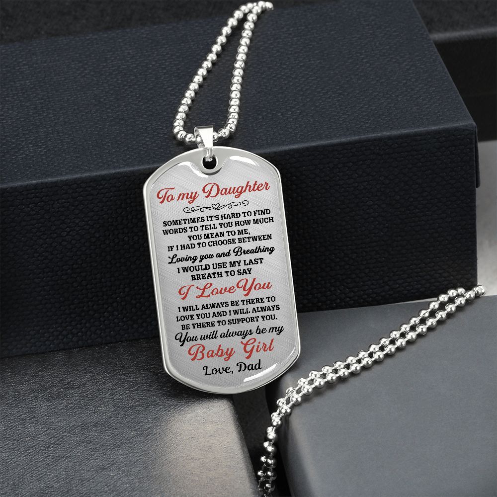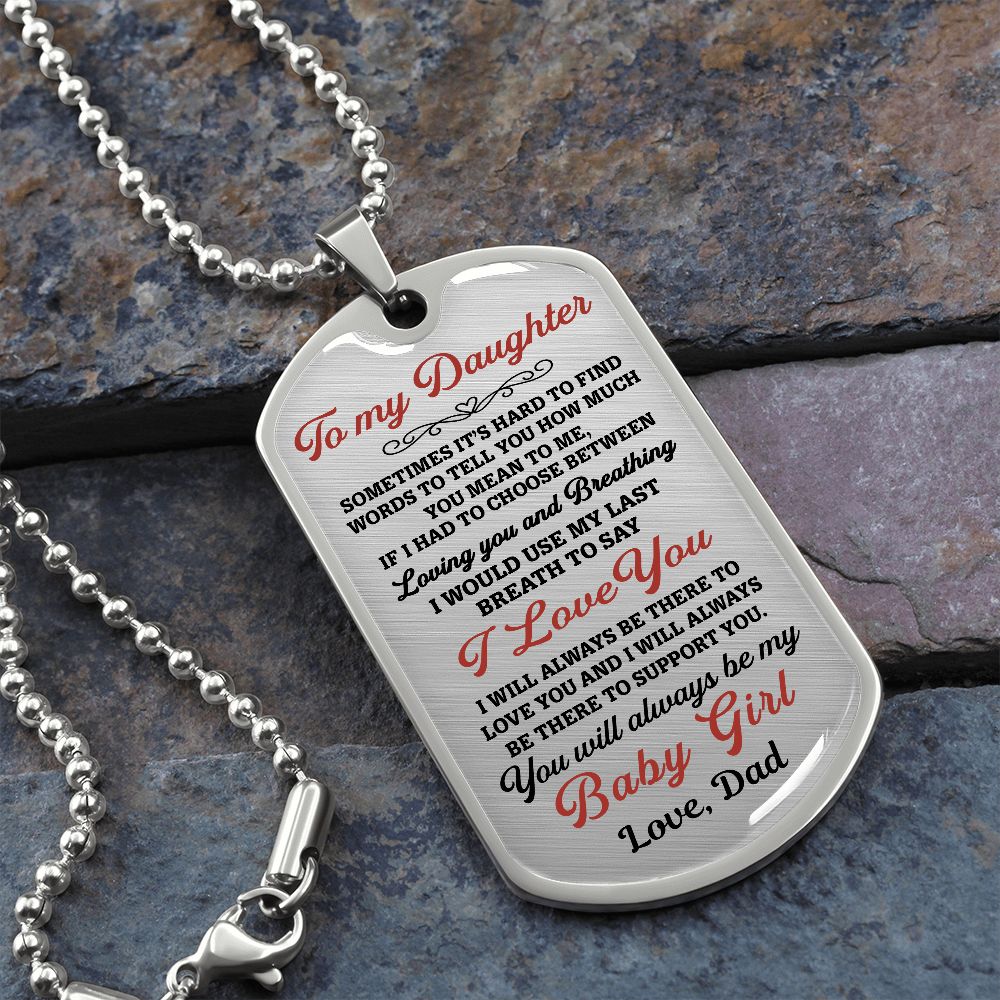 To My Daughter Gift From Dad | Sometimes It's Hard | Dog Tag Necklace