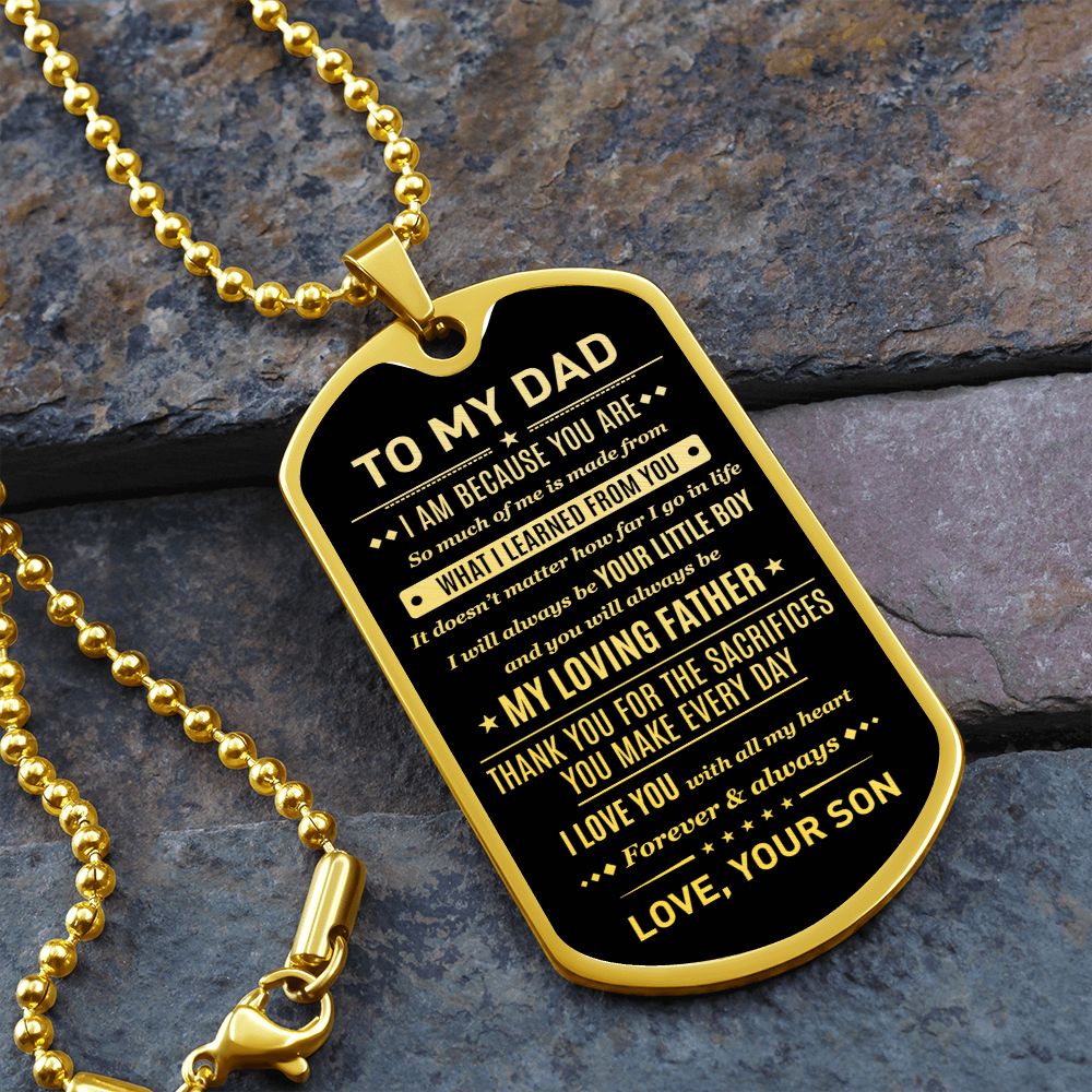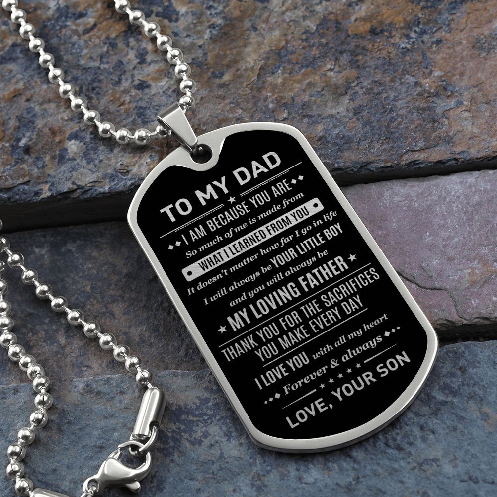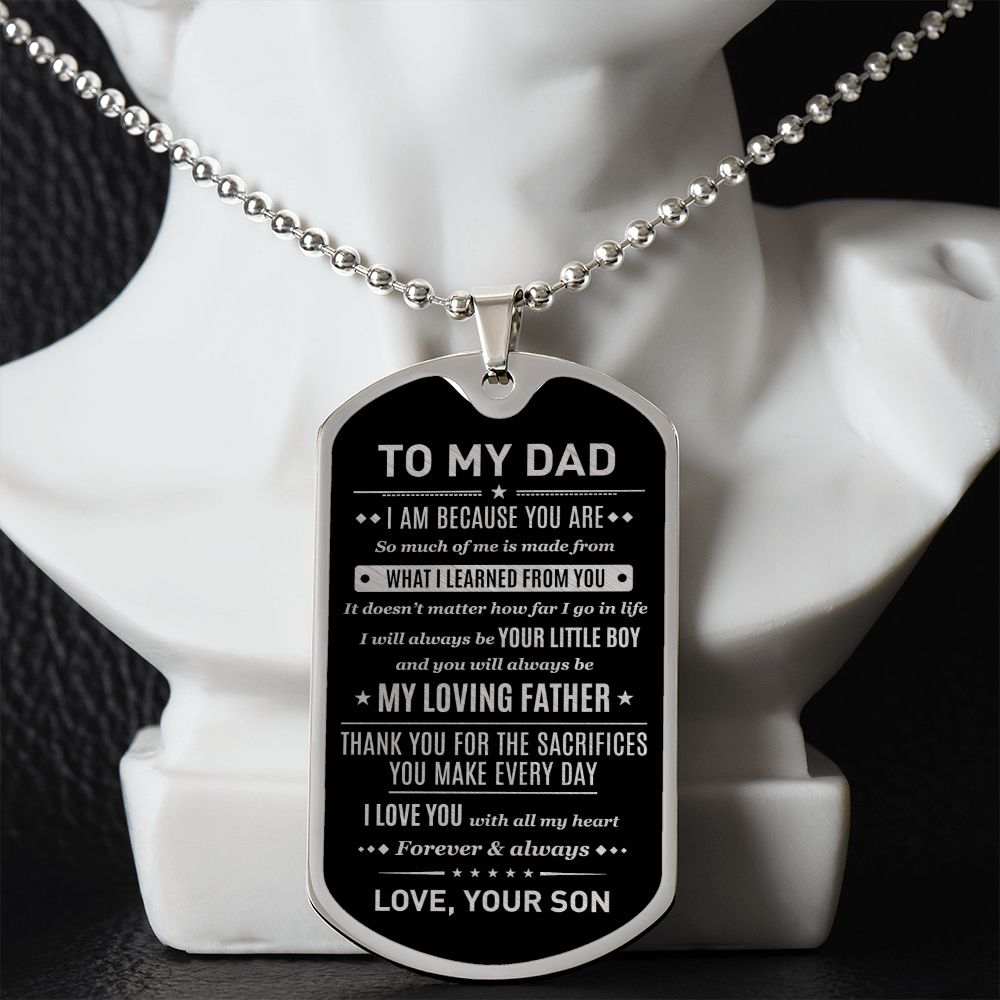 To My Dad - I Am Because You Are, Dogtag Necklace Gift