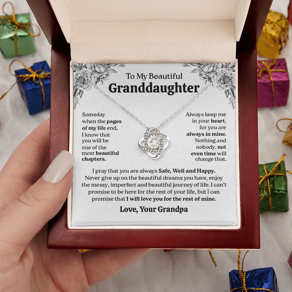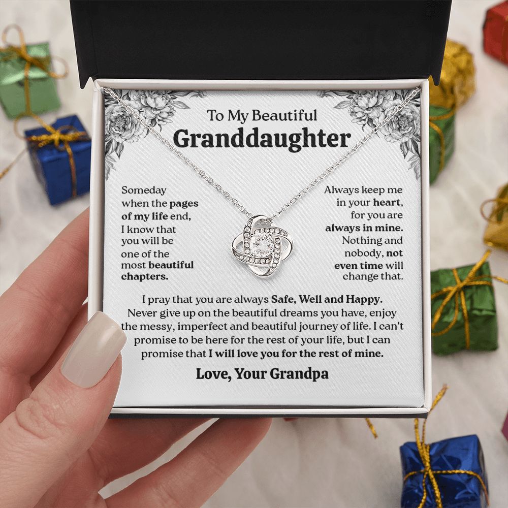 To My Beautiful Granddaughter - Safe Well and Happy, Love Knot Necklace