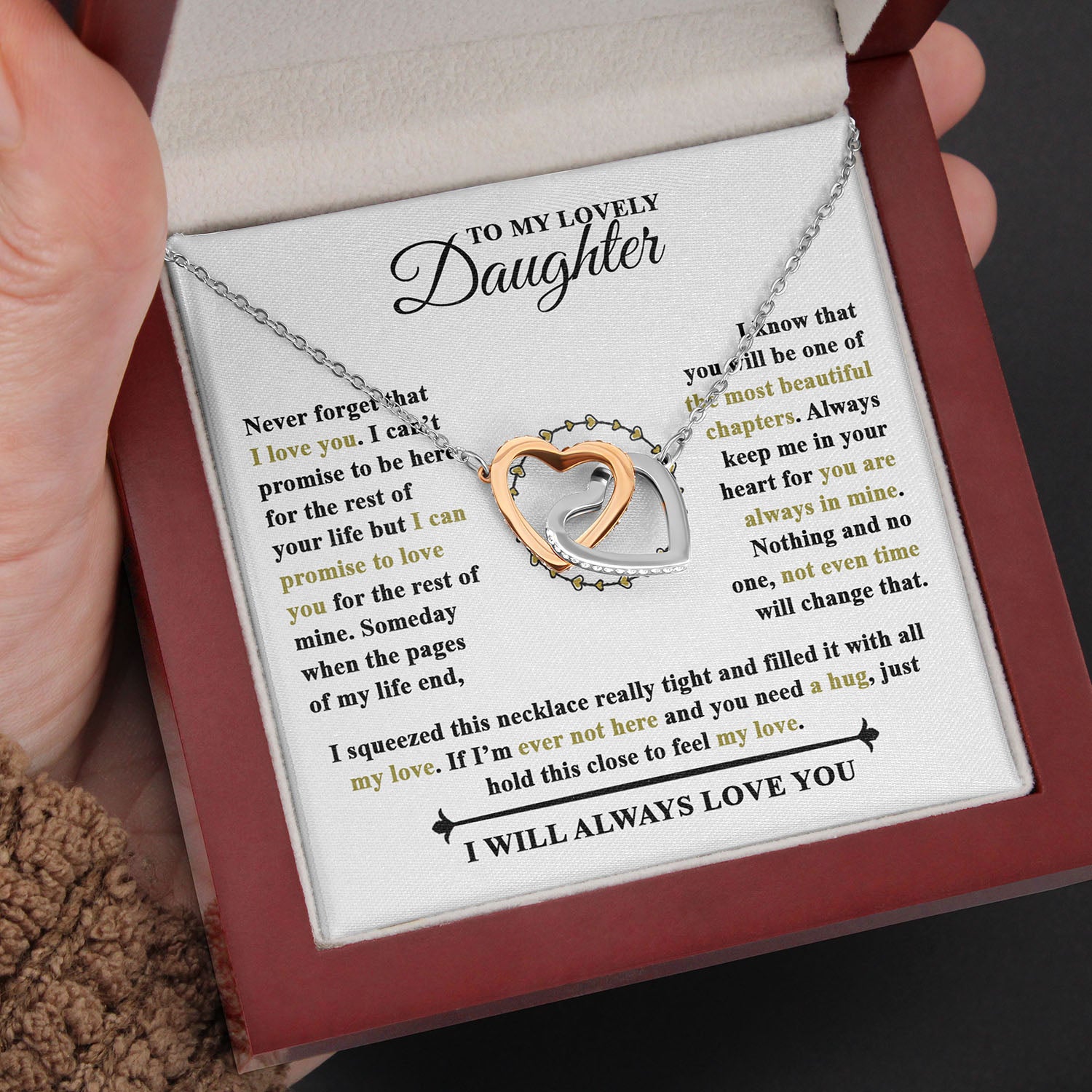 To My Lovely Daughter | Never Forget That I Love You | Interlocking Hearts necklace