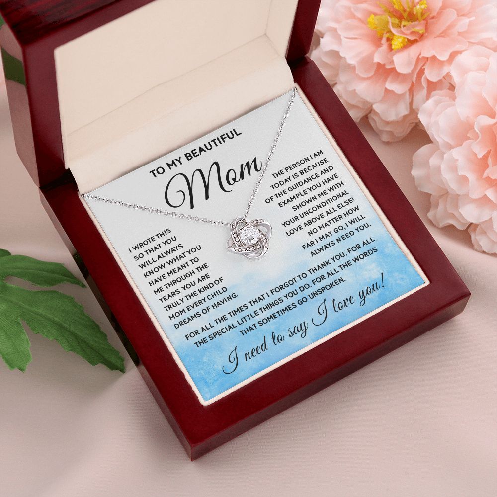 Mom I Wrote This, Love Knot Necklace, Mother's Day Gift For Mom