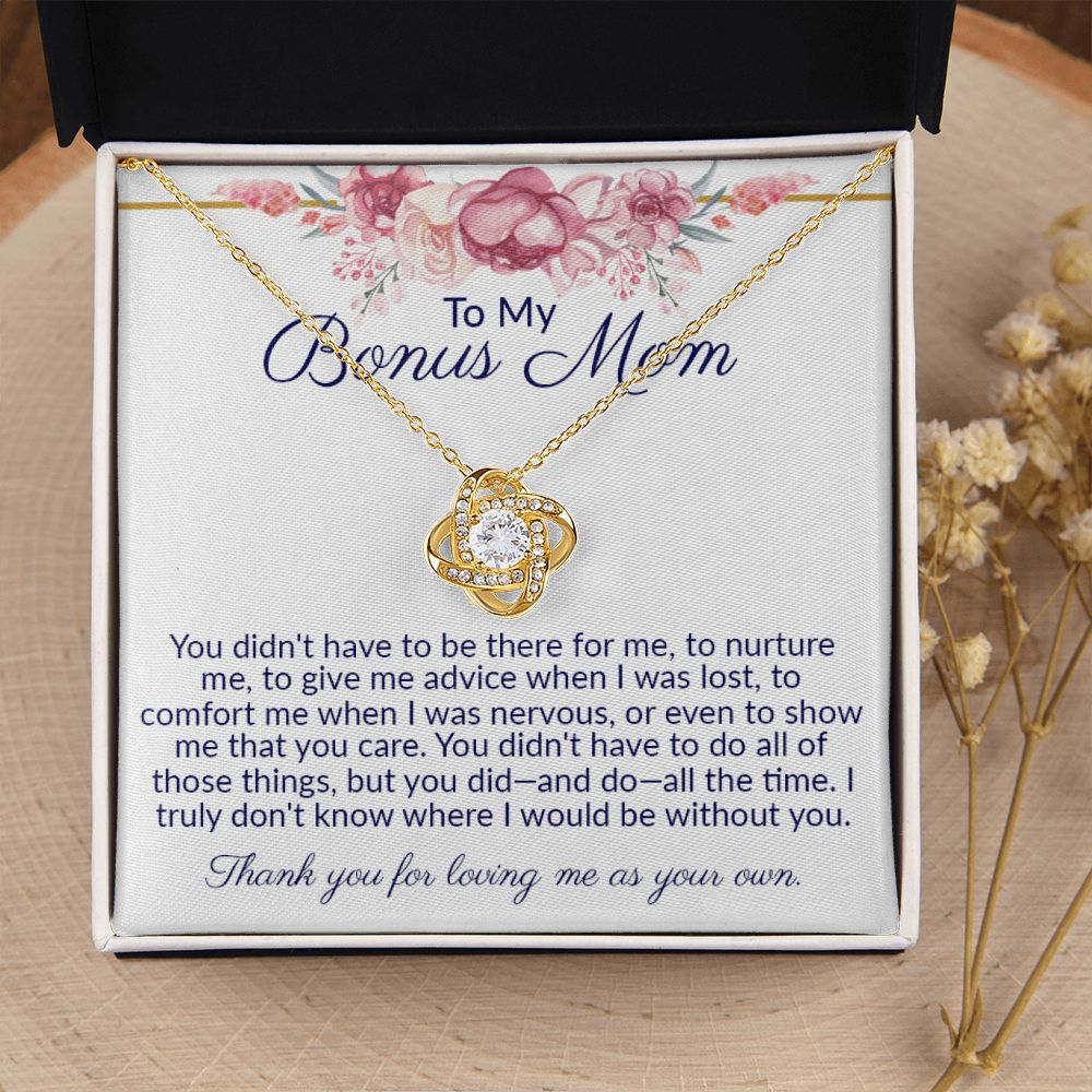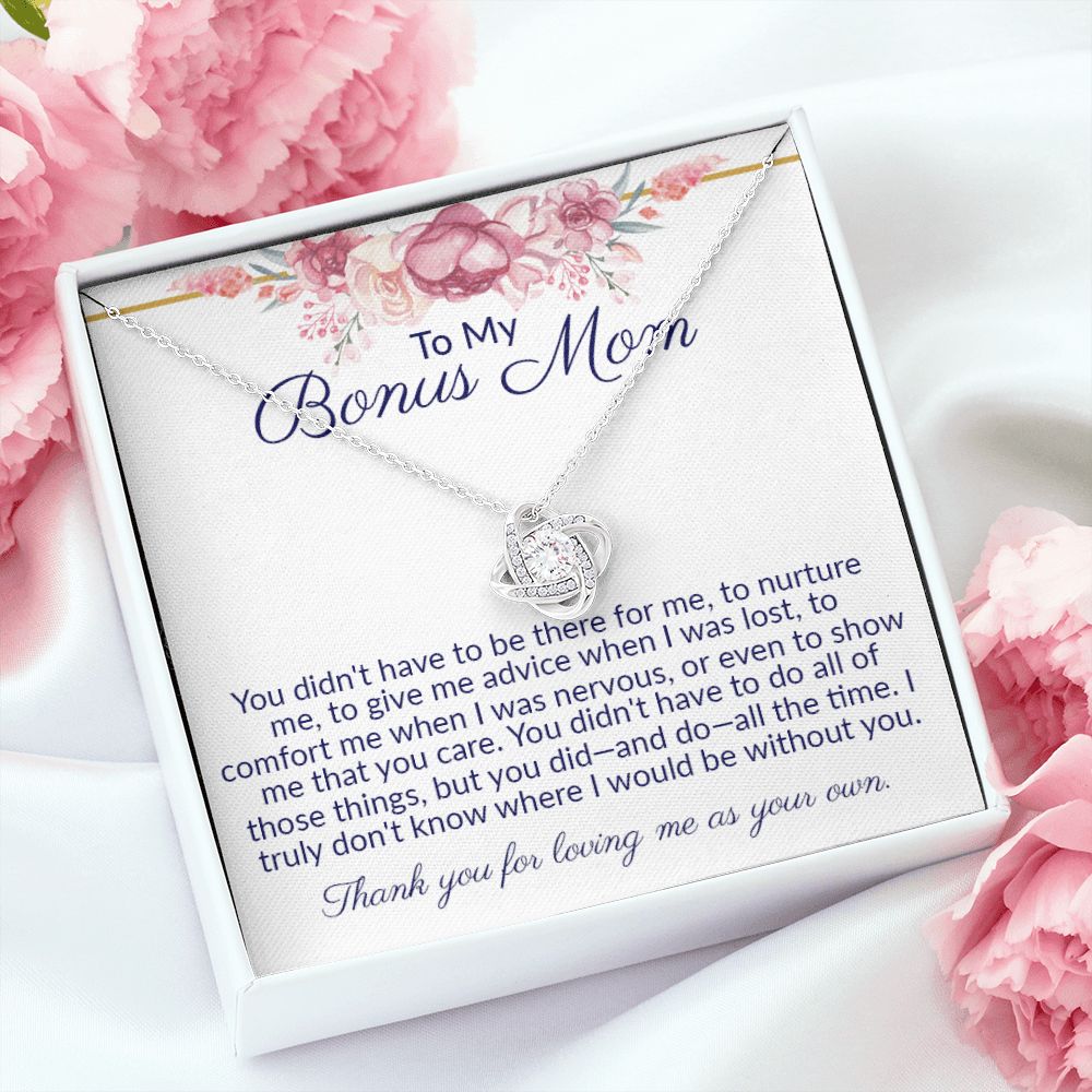 To My Bonus Mom - Thank You For Loving Me As Your Own, Love Knot Necklace.