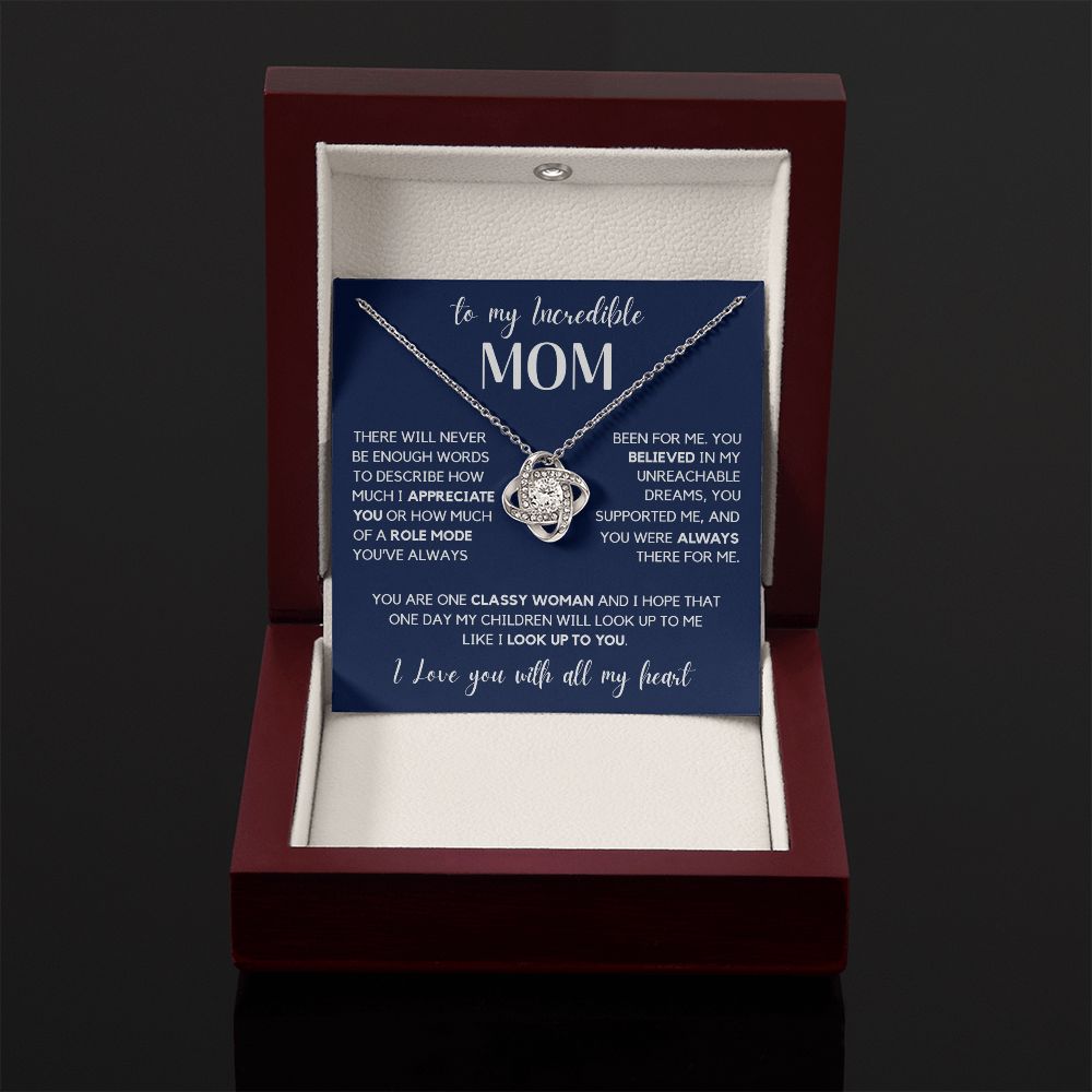 To my Mom - I Love You With All My Heart, Love Knot Necklace