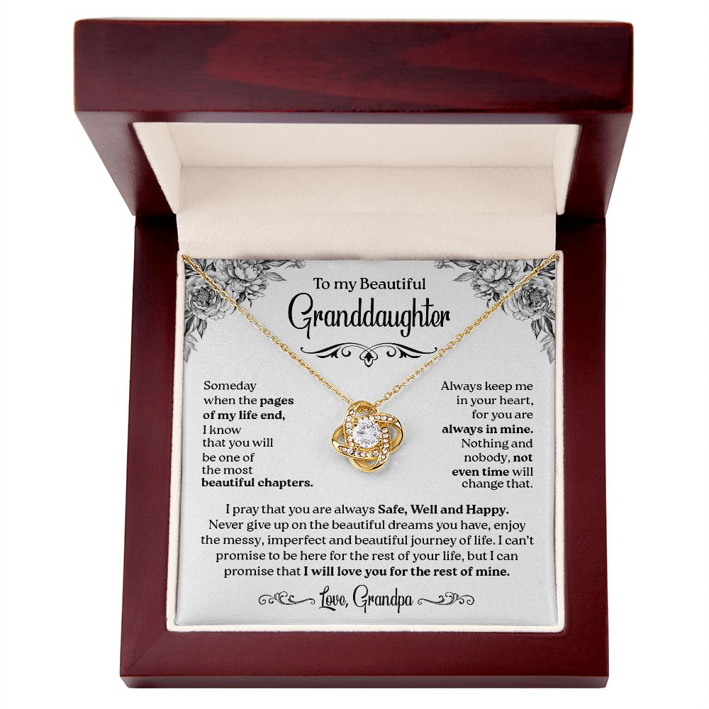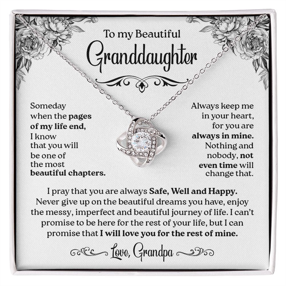 To My Granddaughter - Safe Well and Happy, Love Knot Necklace